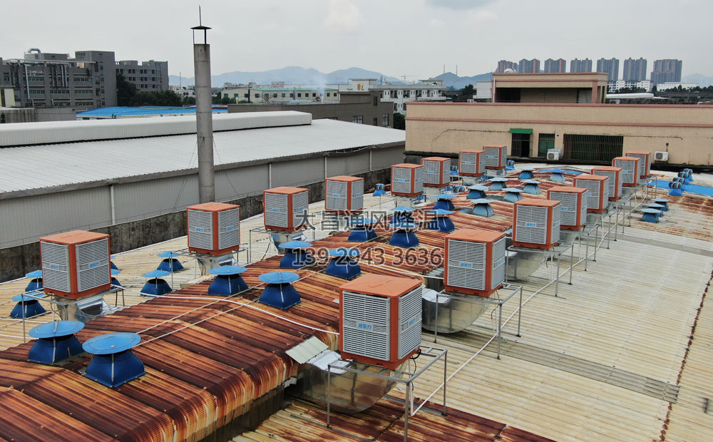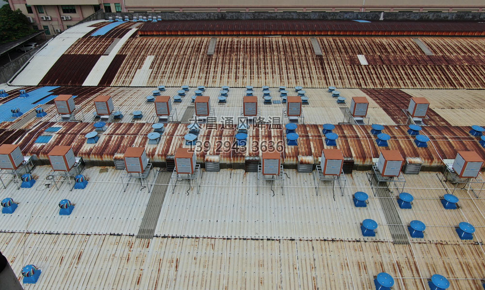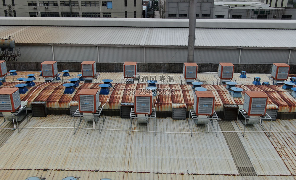 "潤東方"環(huán)保空調(diào),安裝費用低,運行費用少,平均每百平方米車間每小時降溫費用僅需1度電,特別適合在生產(chǎn)型企業(yè)的車間里使用,下圖為東莞某大型鋼結(jié)構(gòu)車間安裝潤東方環(huán)??照{(diào)的工程圖片: